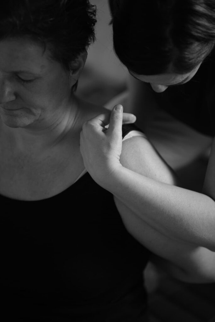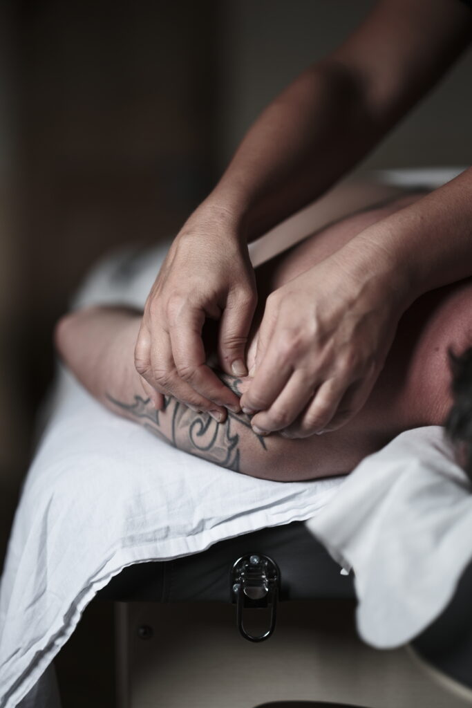 Von der Oberfläche in die Tiefe wird das Gewebe und die Muskulatur bearbeitet und gelockert.